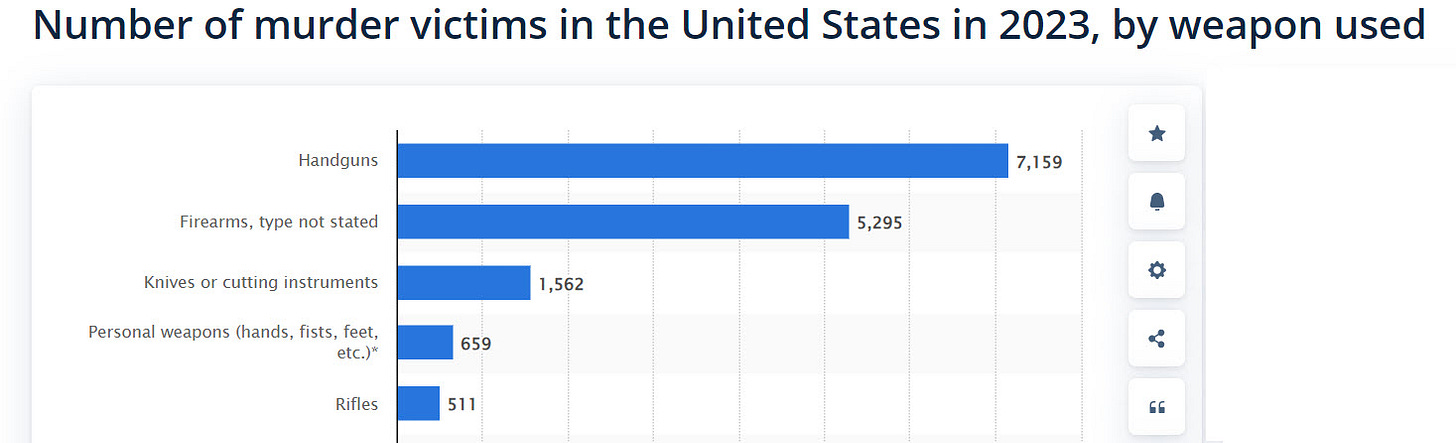 And for way too long, I’ve ridiculed the notion of “gun violence” for that very reason. This position has not won over a lot of support from my fellow Democrats. (as in, any whatsoever). Popularity has not been my goal, thankfully.